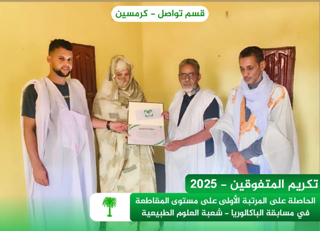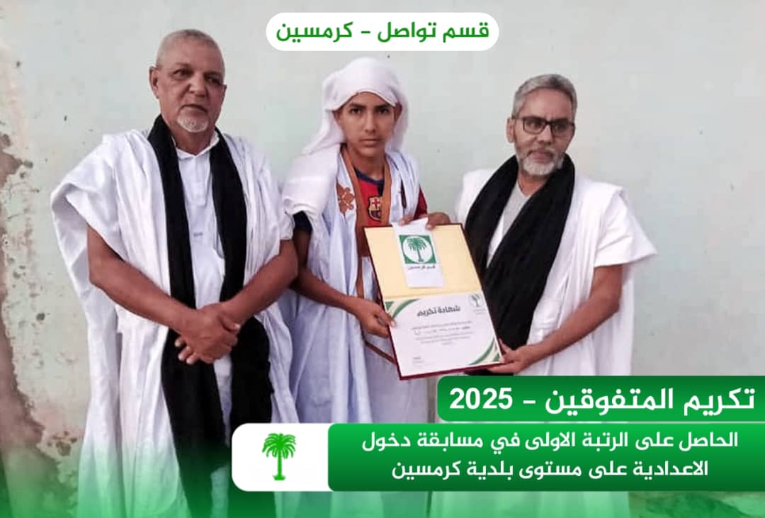 قدم قسم تواصل على مستوى مقاطعة كرمسين تكريما للمتفوين في المسابقات الوطنية تمثل في شهادة تكريم ومبلغ مالي، وتمت زيارة المكرمين في منازلهم لتقديم التكريمات، والتهنئة بمناسبة التفوق.