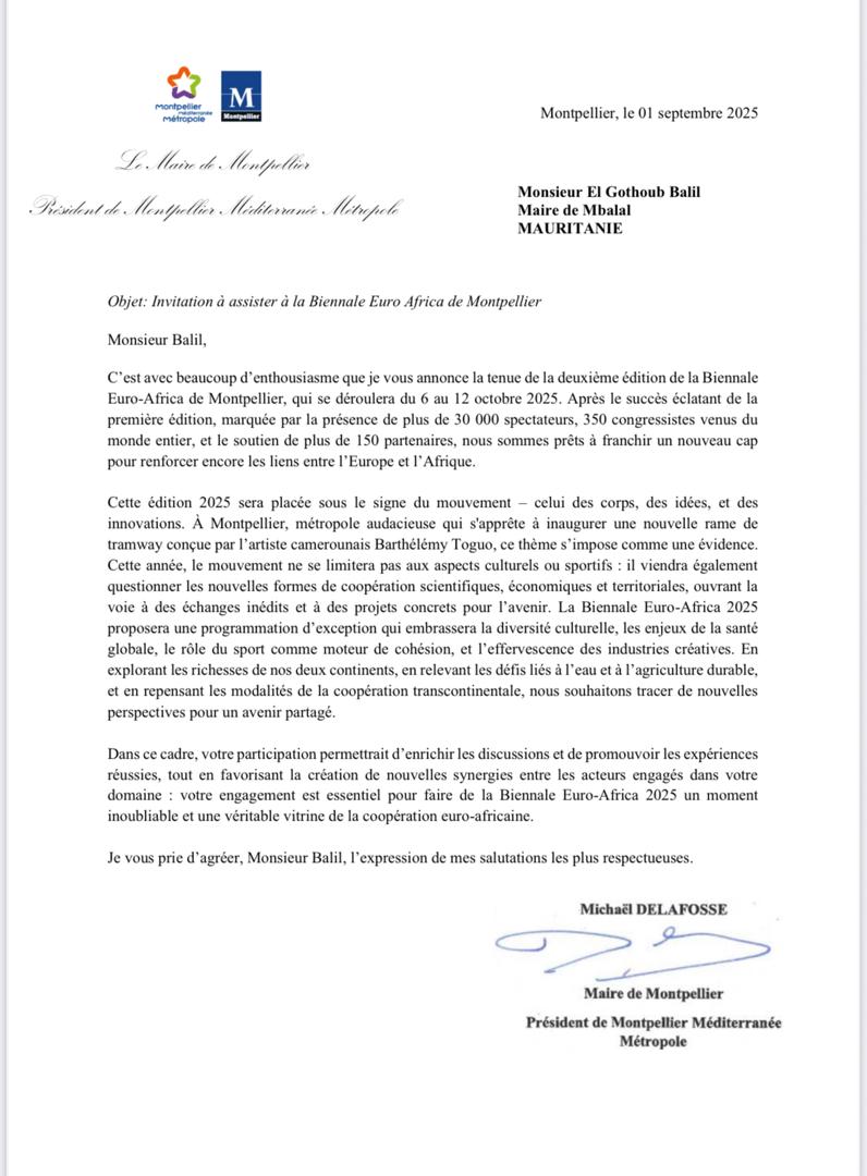 وتأتي هذه المشاركة بدعوة رسمية من عمدة بلدية مونبلييه، السيد ميشال ديلافوس، في خطوة تعكس الحضور المتنامي للبلديات الموريتانية في الفضاءات الدولية.