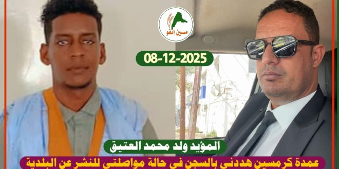أكد الشاب المؤيد ولد محمد العتيق، المعروف بمناضل كرمسين، لمسين إنفو، أن عمدة بلدية كرمسين الشيخ المستعين ولد أحمياة اتصل به وهدده بالسجن في حال نشر أي منشورات تتعلق بسير عمل البلدية.