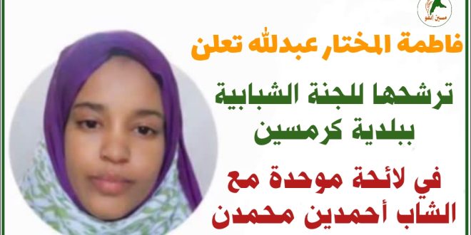 فاطمة المختار عبدالله تعلن الترشح لعضوية اللجنة الشبابية بكرمسين