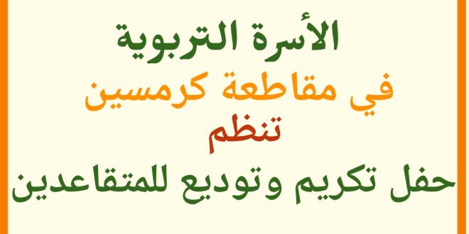 كرمسين : الأسرة التربوية تستعد لتنظبم حفل تكريم وتوديع للمتقاعدين